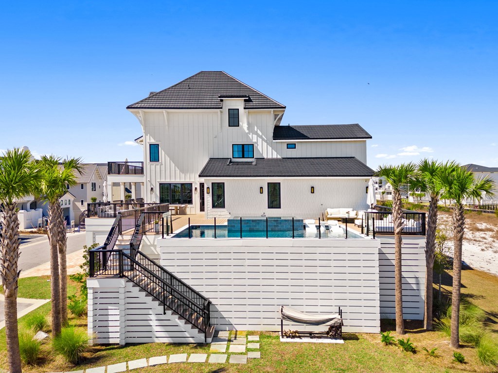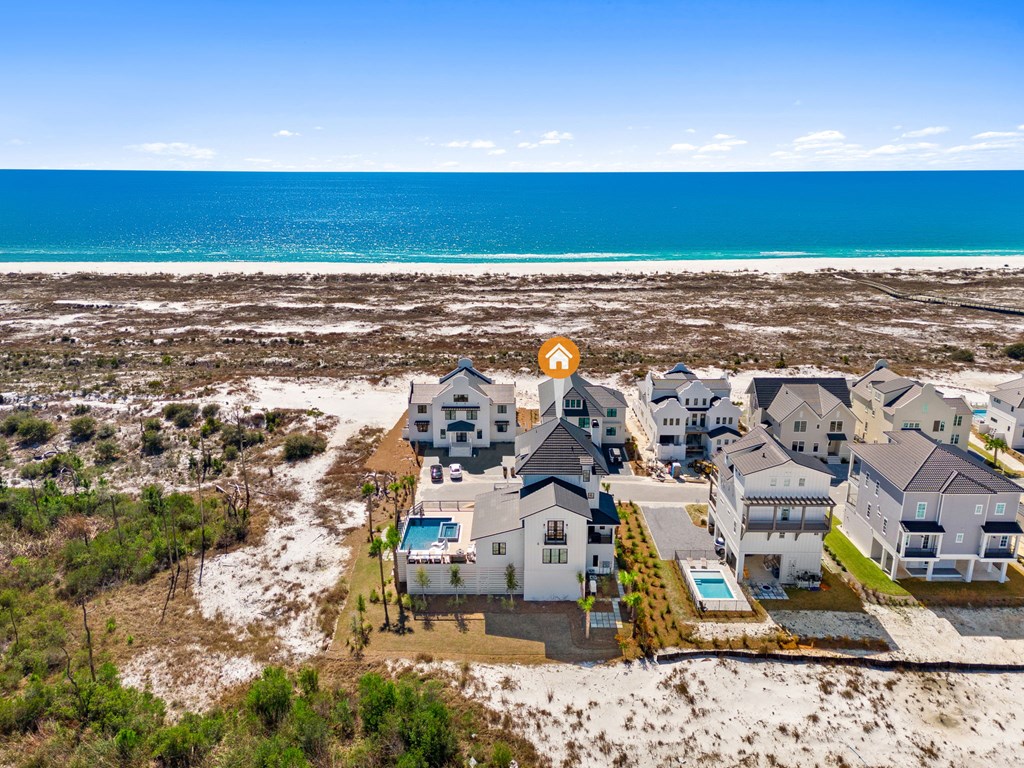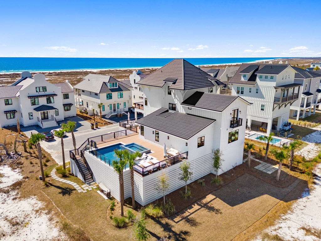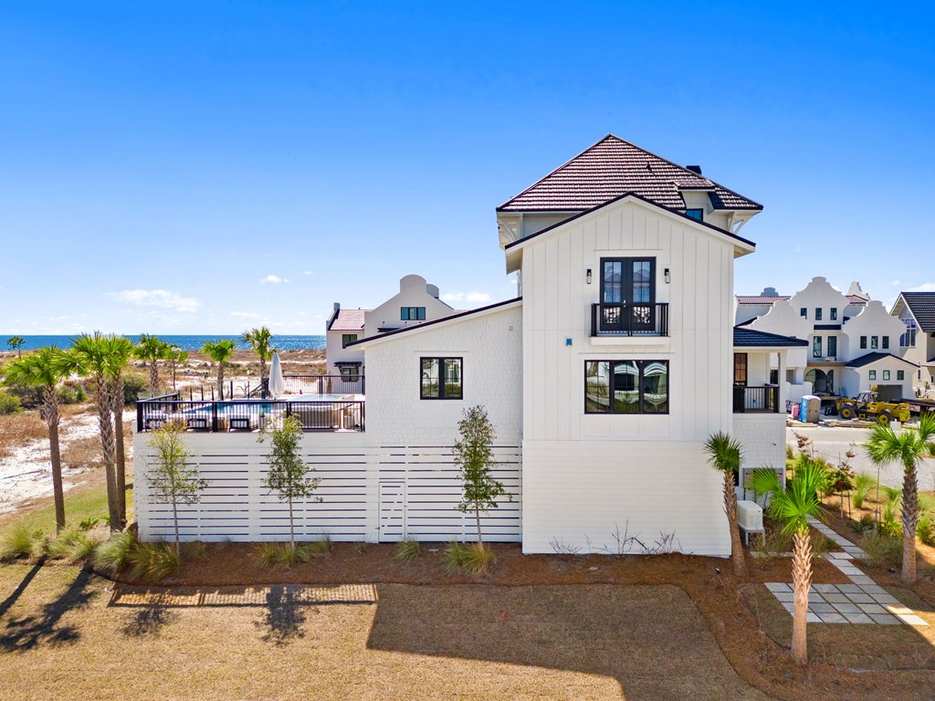 This is one of the most thoughtfully designed and impressive homes in Sugar Sand, and a true standout along the Mexico Beach/Forgotten Coast. Built as a personal, full-time residence, the owners invested heavily in quality, detail, and timeless design, creating a home that is both refined and functional. Located on the first tier at the far east end of the subdivision, this X-Flood property offers unobstructed Gulf-front views. The home features approximately 6,100 square feet of conditioned space and nearly 9,600 square feet total, including the garage and expansive outdoor living areas. The layout includes five bedrooms plus a large bunk room, with every sleeping area offering a private en-suite bath. Two additional half baths serve the main living spaces. The home also offers two generously sized family rooms and a den/office on the main living level, providing flexibility for both everyday living and entertaining. The property is exceptionally well-appointed, with features too numerous to list in full (a detailed feature sheet is available upon request). Highlights include an elevated heated and cooled pool with a 12-person infinity-edge hot tub, 4 Stop Elevator, a Quad Plus golf simulator, Thermador appliances throughout, a fully equipped butler's pantry, whole-home water filtration, kitchen reverse-osmosis system, full smart-home integration with Control4, and top-tier landscape package. This is a rare, one-of-a-kind home that truly must be experienced in person to appreciate the level of craftsmanship and attention to detail. Schedule your private showing today.