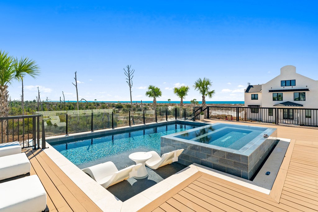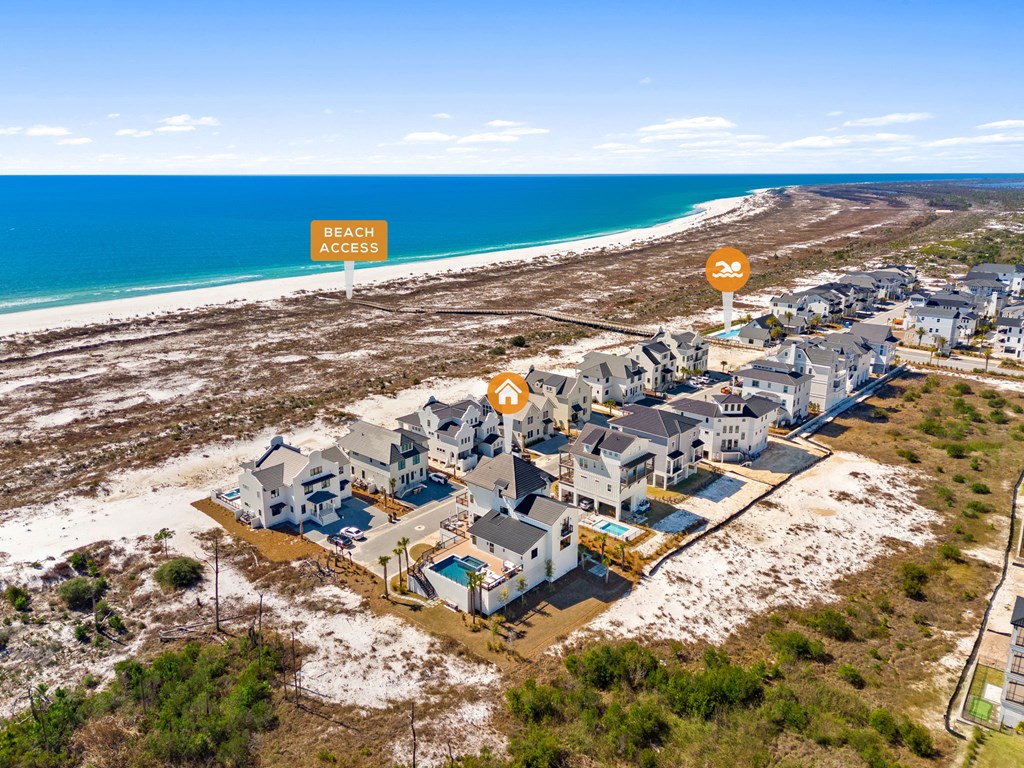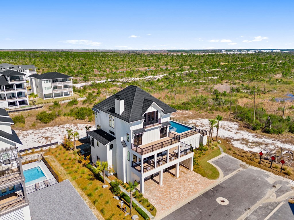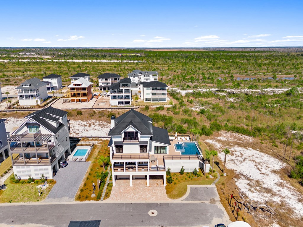 This is one of the most thoughtfully designed and impressive homes in Sugar Sand, and a true standout along the Mexico Beach/Forgotten Coast. Built as a personal, full-time residence, the owners invested heavily in quality, detail, and timeless design, creating a home that is both refined and functional. Located on the first tier at the far east end of the subdivision, this X-Flood property offers unobstructed Gulf-front views. The home features approximately 6,100 square feet of conditioned space and nearly 9,600 square feet total, including the garage and expansive outdoor living areas. The layout includes five bedrooms plus a large bunk room, with every sleeping area offering a private en-suite bath. Two additional half baths serve the main living spaces. The home also offers two generously sized family rooms and a den/office on the main living level, providing flexibility for both everyday living and entertaining. The property is exceptionally well-appointed, with features too numerous to list in full (a detailed feature sheet is available upon request). Highlights include an elevated heated and cooled pool with a 12-person infinity-edge hot tub, 4 Stop Elevator, a Quad Plus golf simulator, Thermador appliances throughout, a fully equipped butler's pantry, whole-home water filtration, kitchen reverse-osmosis system, full smart-home integration with Control4, and top-tier landscape package. This is a rare, one-of-a-kind home that truly must be experienced in person to appreciate the level of craftsmanship and attention to detail. Schedule your private showing today.