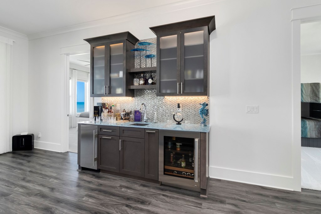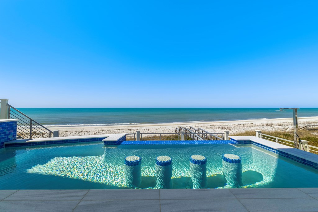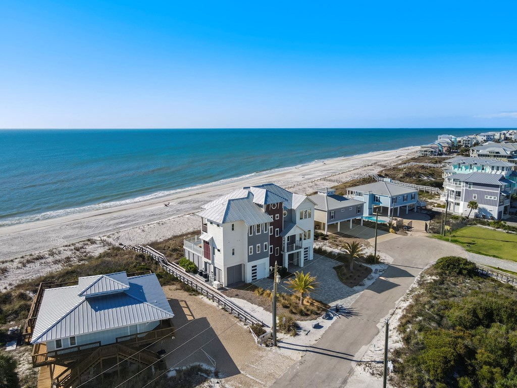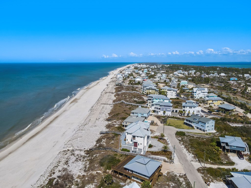 Introducing a Gulf-front luxury masterpiece on Cape San Blas—an absolute showstopper with undeniable WOW factor from the moment you arrive. This extraordinary 6-bedroom home features ensuite bathrooms in every bedroom, creating the perfect balance of privacy and luxury for family and guests. The ground level is pavered with abundant covered parking and generous space for entertaining. A private elevator services all three floors, providing convenience and accessibility throughout the home. The chef's kitchen is nothing short of spectacular, designed to impress with two large islands, extensive custom cabinetry, and top-of-the-line appliances including a Sub-Zero refrigerator/freezer, wine fridge, WOLF convection double ovens, induction cooktop, ice maker, and dishwasher. The stunning backsplash tile serves as a true centerpiece, while designer lighting fixtures throughout the home elevate the overall aesthetic. The expansive main living area, complete with a fireplace, opens onto a Gulf-front balcony overlooking the infinity-edge pool and hot tub. Outdoor living is taken to the next level with an outdoor shower and ample space to relax while taking in the breathtaking Gulf views with your private beach walkover The first living floor features two bedrooms with ensuite baths, a private office, convenient half bath, and utility space. On the third floor, a second living area with wine fridge, sink, and bar creates a perfect gathering space centered between the remaining four bedrooms. Plush carpeting invites comfort in each room. Two bedrooms face the Gulf with stunning views, while the other two enjoy views of St. Joseph Bay. The owner's suite is a luxurious retreat, featuring an elaborate bathroom, walk-in closet, and a hidden surprise—step outside to experience the private Gulf-front outdoor shower. While the home has not been used as a rental, rental projections are available, for a remarkable opportunity. Home also features Generac generator for piece of mind.