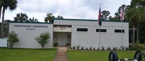 The Constitution Convention Museum highlights Florida's first constitution which was drafted in the Town of St. Joseph. Artifacts from the original settlement in St. Joseph are displayed. The original town of St. Joseph, which lasted only nine years, was a boomtown in 1835 and competed with Apalachicola as a Gulf Coast trading port. During its short life, the city was selected over Tallahassee to host Florida's first State Constitution Convention. The museum, which sits on a portion of the park's 12 acres, commemorates the work of the 56 territorial delegates who drafted Florida's first constitution in 1838. Following four more constitution conventions, Florida was finally admitted to the Union in 1845 as the 27th state. Visitors can take a self-guided tour through displays and exhibits of the era. A replicated convention hall takes visitors into the debate of delegates Robert Raymond Reid, William P. Duvall, David Y. Levy and Thomas L Baltzell. These life-size, audio-animated mannequins bring a realistic demonstration of the debate and process of drafting a state constitution.