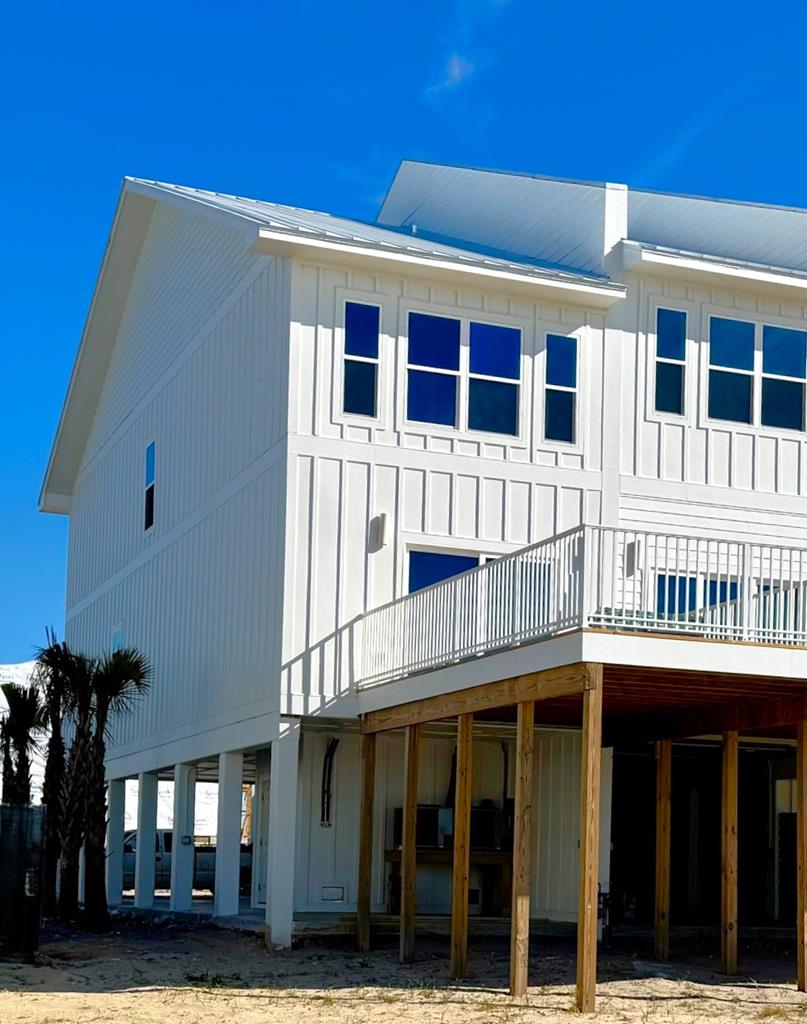 Beachfront Private Pool ICF Construction. Experience refined coastal living in this newly built 3-bedroom, 3.5-bath + bunk room Gulf-front townhome on 38th Street in Mexico Beach. Designed with durability and modern comfort in mind, this property showcases ICF construction for superior strength and energy efficiency, paired with elegant finishes that define coastal sophistication. Step inside to an open-concept living, dining, and kitchen area that captures sweeping views of the Gulf of Mexico through full-panel sliding doors. The kitchen features quartz countertops, custom cabinetry, and stainless appliances, creating a stylish and functional centerpiece for entertaining. Enjoy plank flooring throughout, tile showers, plantation shutters, and recessed lighting that add to the home's clean, modern aesthetic. Outdoor living takes center stage with a 24-foot beachfront deck, perfect for sunbathing or sunset dining, and a private pool surrounded by paver decking for relaxed days by the water. An outdoor shower adds convenience after a beach swim, while thoughtful design ensures seamless indoor-outdoor flow. The upper level includes a Gulf-view primary suite, additional guest bedrooms, and a bunk room that enhances sleeping capacity—ideal for hosting family, friends, or short-term vacation rentals. Located less than a mile from Toucan's, Killer Seafood, Caribbean Coffee, and the Mexico Beach Marina, this home offers unmatched access to dining, boating, and recreation. Whether as a personal retreat or investment property, this residence delivers the best of Gulf-front living in Mexico Beach—where modern luxury meets coastal resilience.