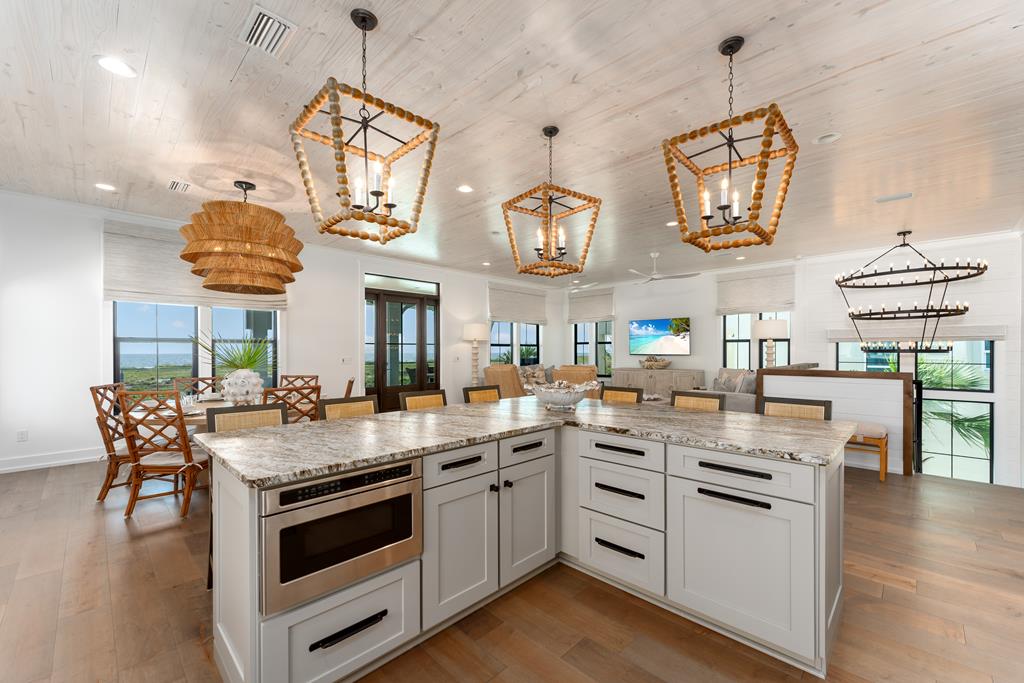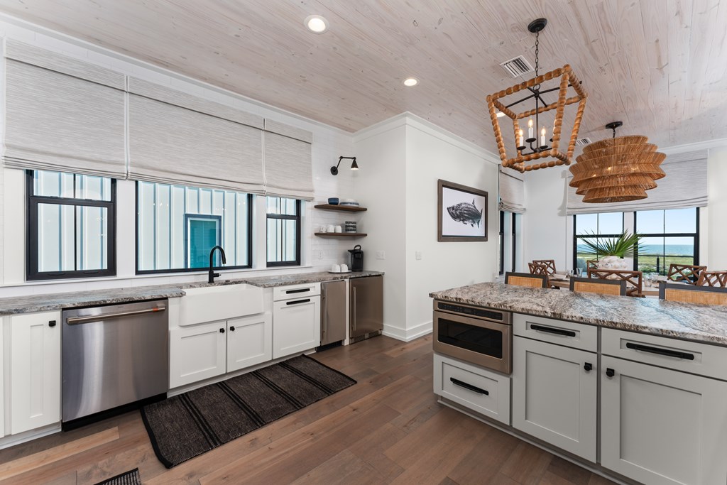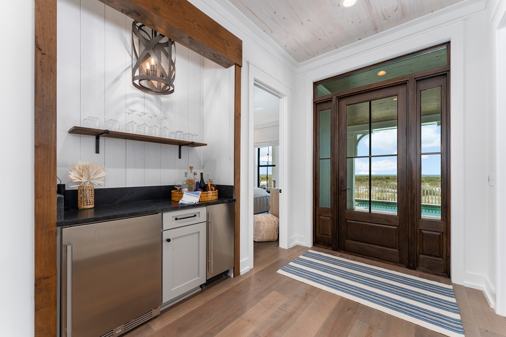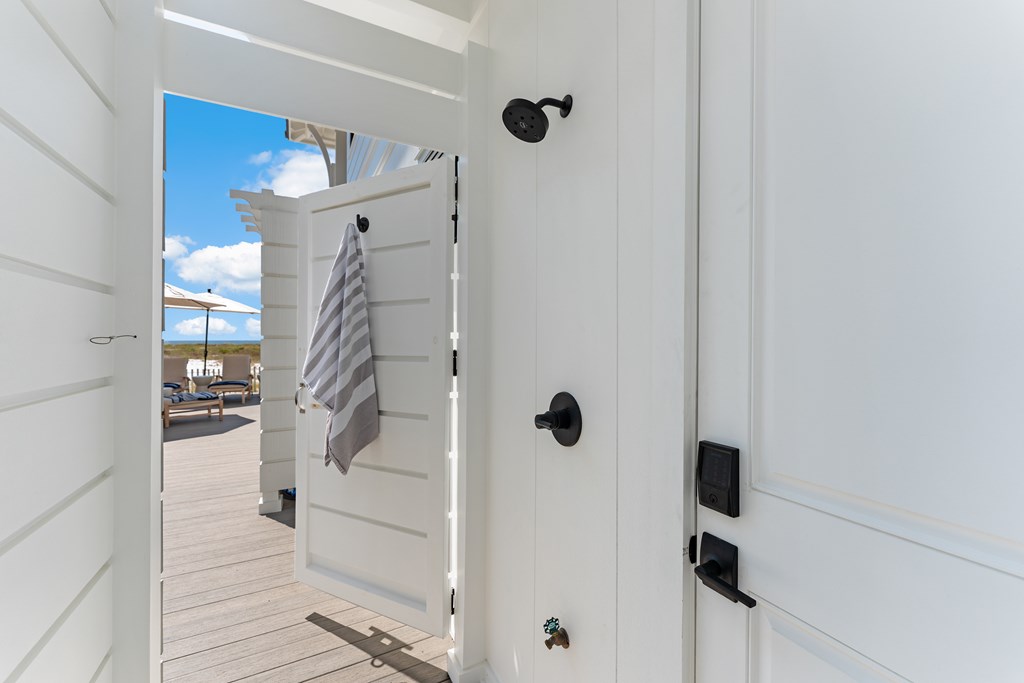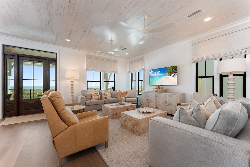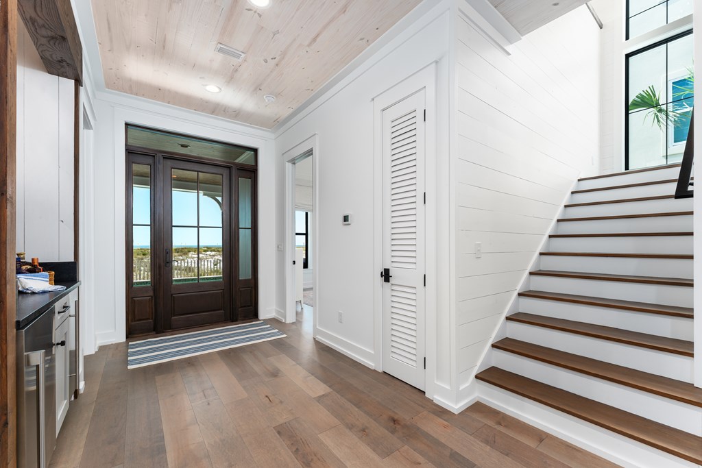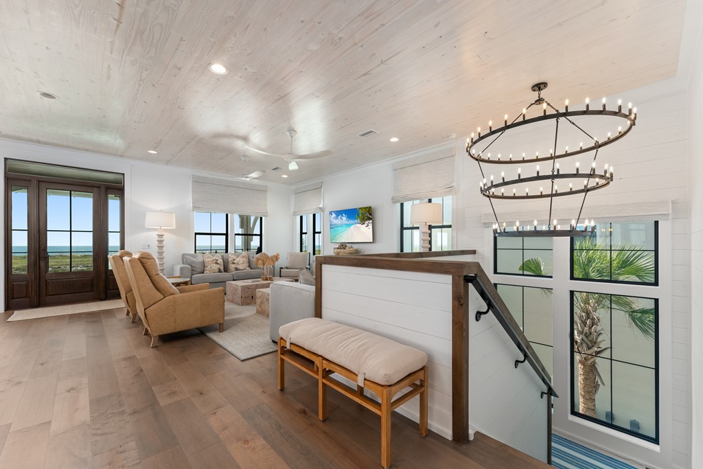 Refined living for the most discerning buyer. Details abound in this newly built, custom-designed Gulf front home nestled in the exclusive Sugar Sands subdivision, a pristine beachfront community in Mexico Beach. From the warm wood accents on ceilings and walls to the hand-selected pecky cypress doors, every element reflects superior craftsmanship and thoughtful design. The home offers four spacious bedrooms, each with its own en suite bath, along with two additional half baths, dual laundry rooms, and an outdoor shower—balancing comfort with convenience. Expansive porches and decks invite you to enjoy sweeping Gulf views, while the heated saltwater pool provides a serene retreat. Inside, the primary suite showcases a tray ceiling crafted from whitewashed pecky cypress—a stunning architectural statement. The open-concept living, dining, and kitchen space on the second floor is framed by walls of windows, ensuring every sunset is unforgettable. A chef's kitchen with premium appliances, a second ice maker, and a generous island completes the heart of the home. Equally suited as a private retreat or a high-performing investment, this coastal modern masterpiece embodies relaxed luxury, where quality, privacy, and natural beauty come together seamlessly.
