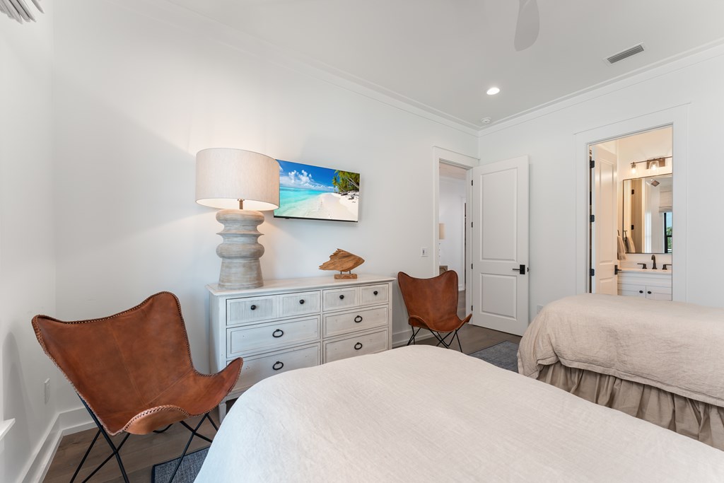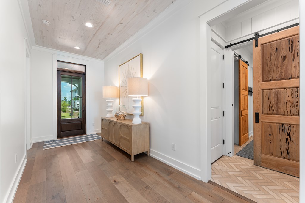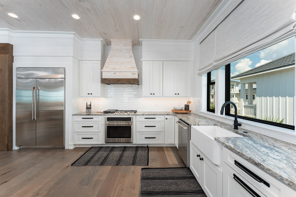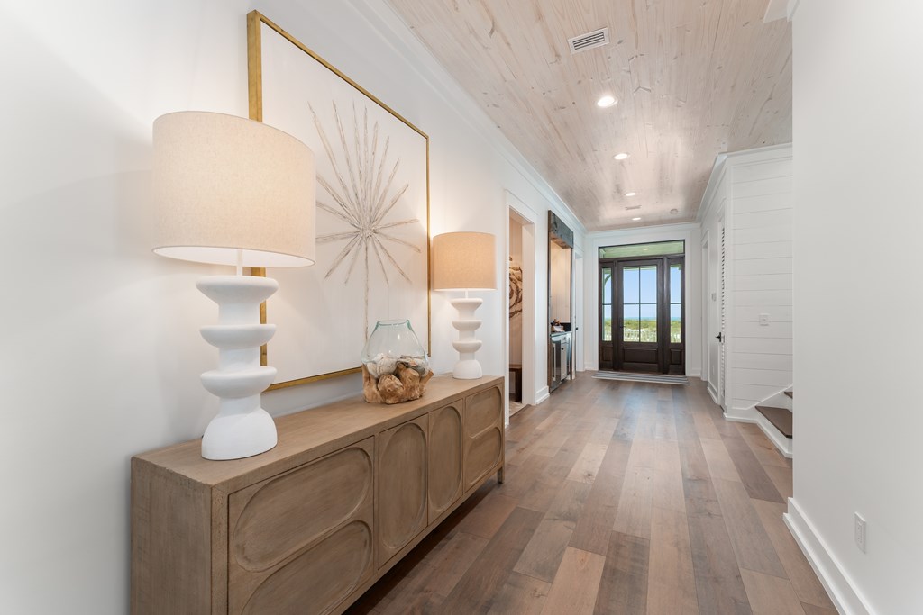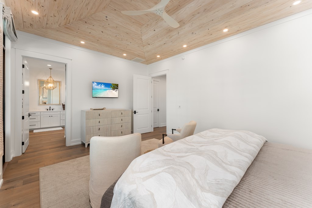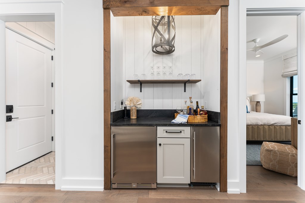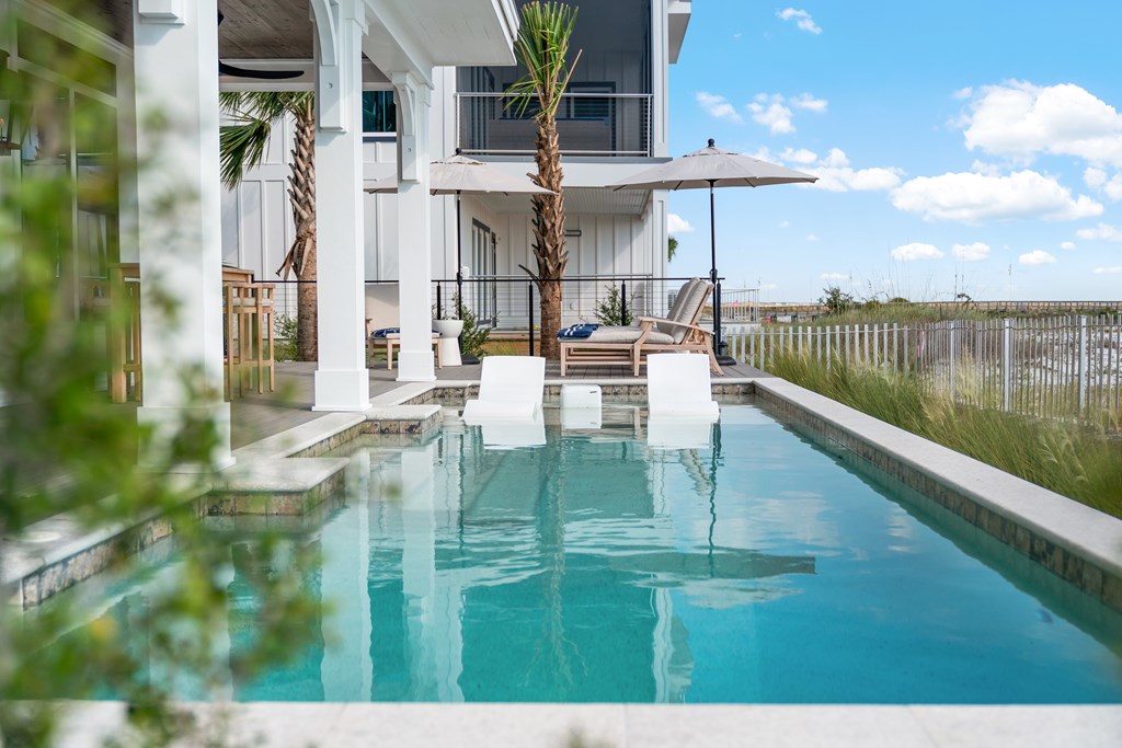 Refined living for the most discerning buyer. Details abound in this newly built, custom-designed Gulf front home nestled in the exclusive Sugar Sands subdivision, a pristine beachfront community in Mexico Beach. From the warm wood accents on ceilings and walls to the hand-selected pecky cypress doors, every element reflects superior craftsmanship and thoughtful design. The home offers four spacious bedrooms, each with its own en suite bath, along with two additional half baths, dual laundry rooms, and an outdoor shower—balancing comfort with convenience. Expansive porches and decks invite you to enjoy sweeping Gulf views, while the heated saltwater pool provides a serene retreat. Inside, the primary suite showcases a tray ceiling crafted from whitewashed pecky cypress—a stunning architectural statement. The open-concept living, dining, and kitchen space on the second floor is framed by walls of windows, ensuring every sunset is unforgettable. A chef's kitchen with premium appliances, a second ice maker, and a generous island completes the heart of the home. Equally suited as a private retreat or a high-performing investment, this coastal modern masterpiece embodies relaxed luxury, where quality, privacy, and natural beauty come together seamlessly.