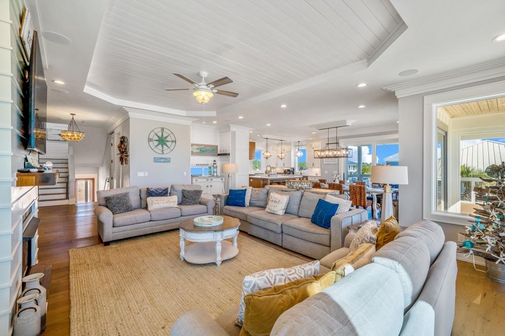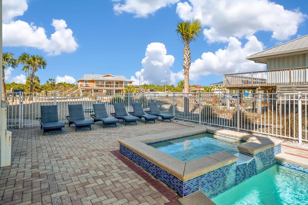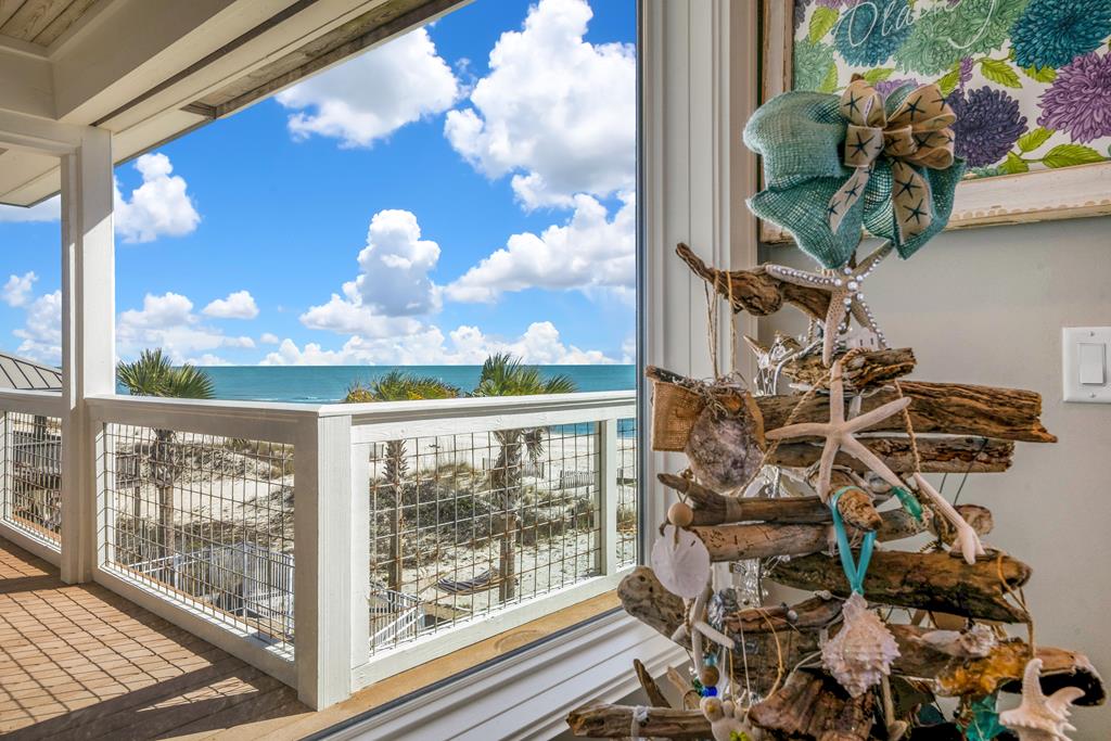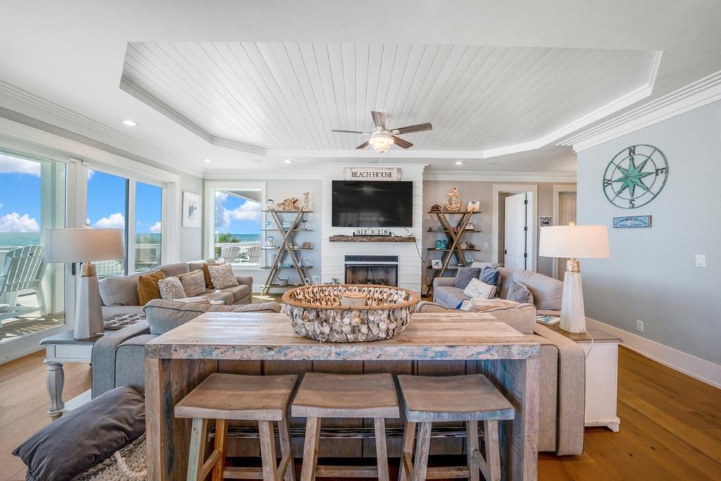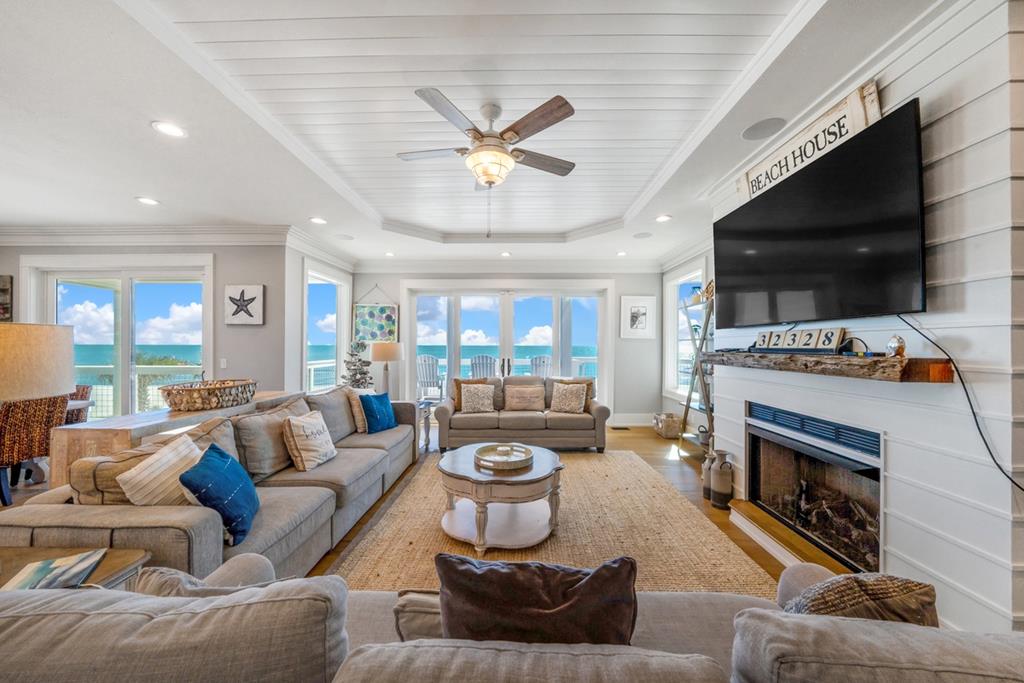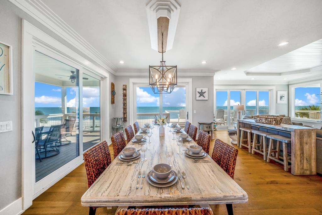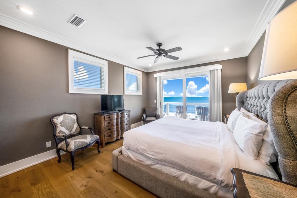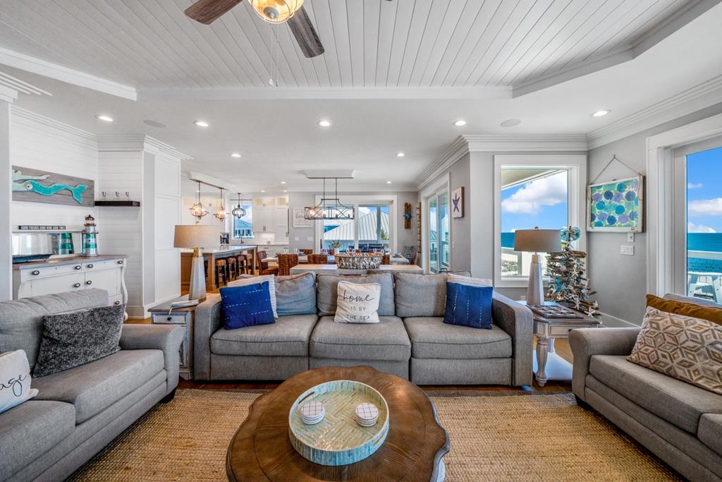 "Solitude" Exquisite Gulf Front home nestled on St George Island's acclaimed East End with 100' frontage on Gulf of Mexico white sand beach. This architectural beauty, built by renowned William Solburg and completely renovated in 2021, epitomizes timeless elegance and modern convenience. Experience private resort living with the heated salt water pool/spa, fire pit, outdoor kitchen, al fresco' dining, brick paved patio, and multiple gathering areas overlooking blue ocean water and uncrowded white sand beach. This elegant home was custom designed to capture morning sunrise and the glow of evening sunset over the Gulf of Mexico. The inherent warmth of the tastefully appointed open gathering/dining area is amplified by a gas fireplace and light streaming from wrap-around window walls and doors leading to the expansive waterfront deck. A spacious 2nd floor game/media room with Gulf side deck adds fun for all ages with arcade games, foosball, and large-screen TV. The open kitchen presents a picturesque place to prepare and share meals. A true Chef's delight equipped with center island prep-breakfast bar, quartz countertops, generous bright white cabinetry, 2 dishwashers, double ovens and refigerators, icemaker, a large Butler's pantry and a premium gas range with custom exhaust hood. Comfortable sleeping accomodations abound for family and guests with 8 bedrooms, 7 baths and 2 powder rooms. 6 bedrooms open to decks or private balconies to embrace the serenity of lapping waves and starlit skies. Solid construction with LVP flooring, Hardi type siding and underpinning, weather guard stairs/decking, and standing seam metal roof. "Solitude" is a popular vacation rental offered turnkey furnished.