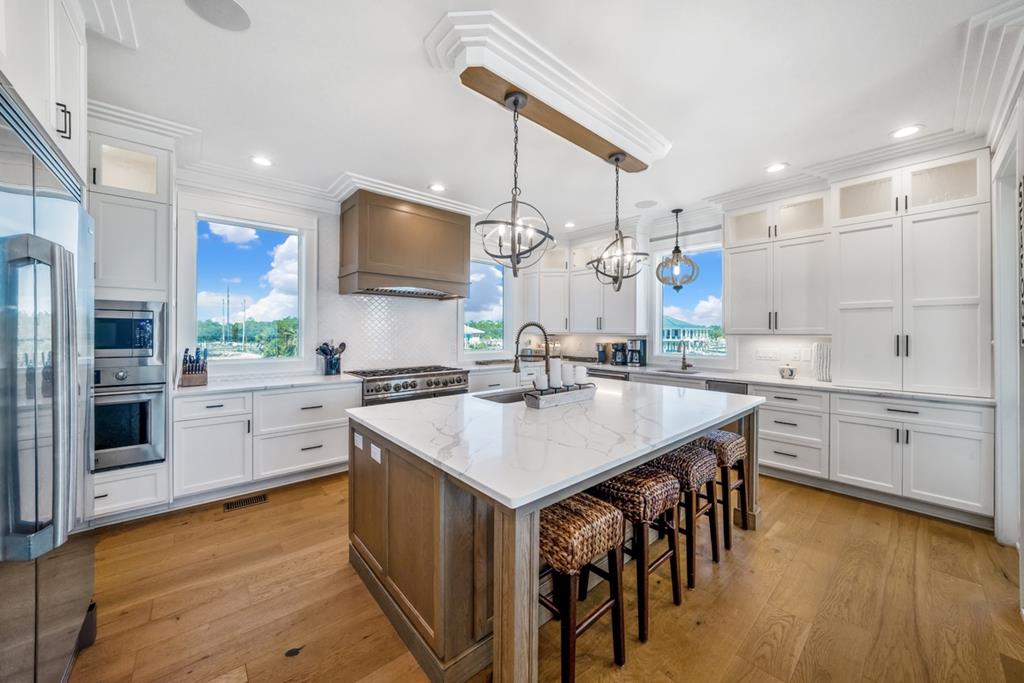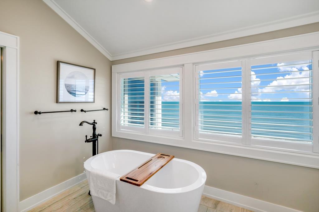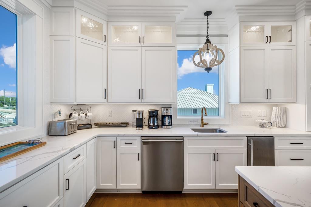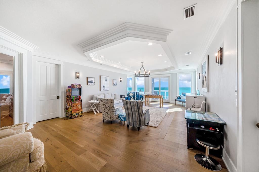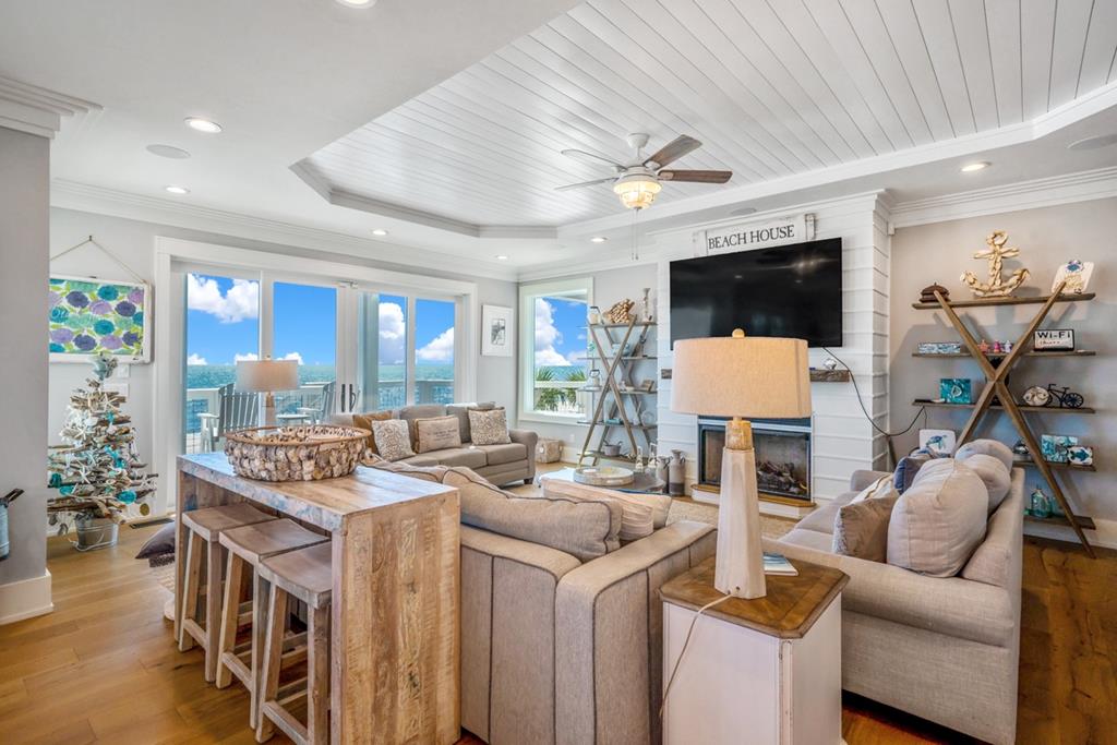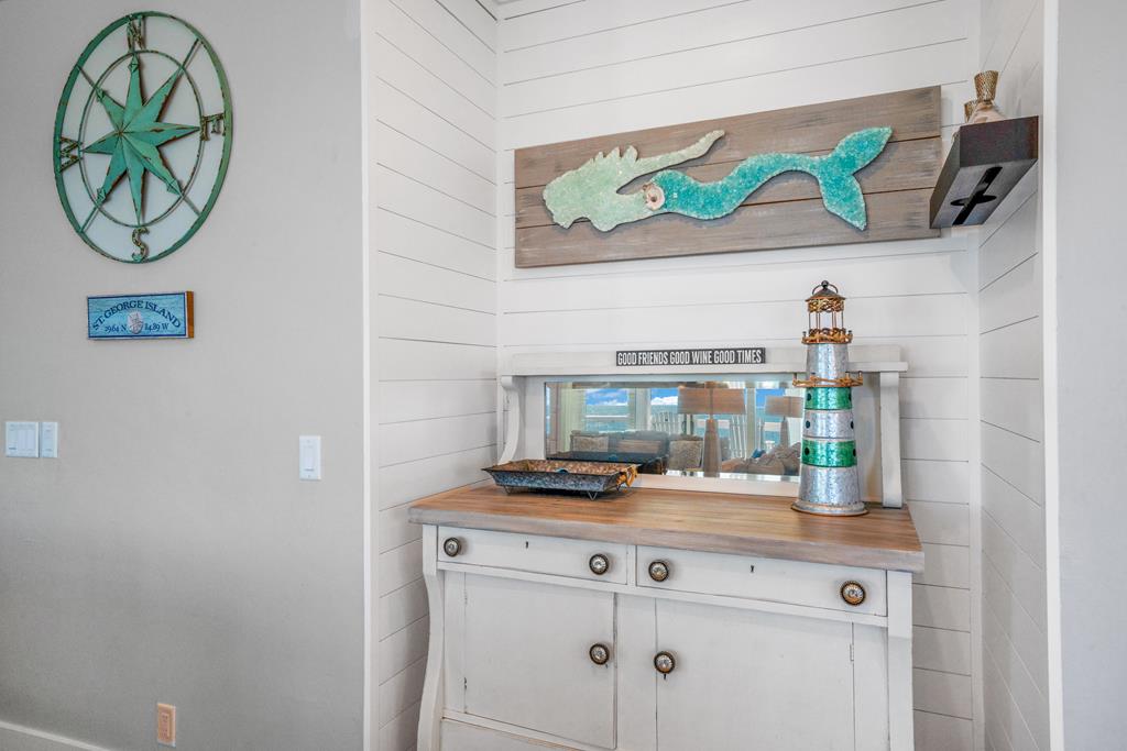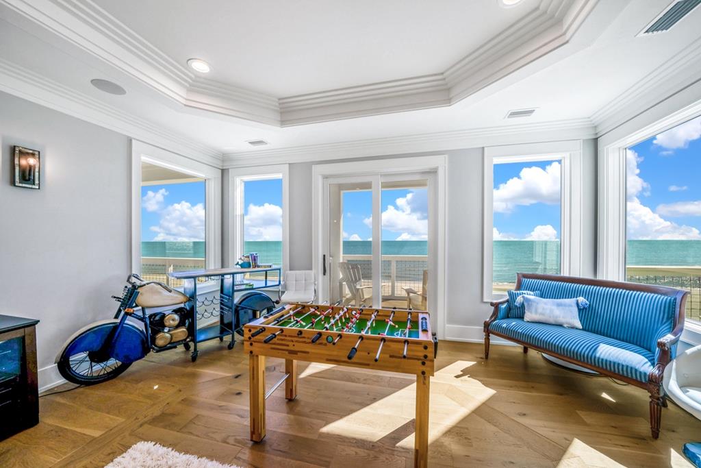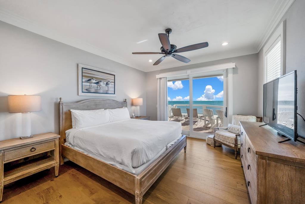 "Solitude" Exquisite Gulf Front home nestled on St George Island's acclaimed East End with 100' frontage on Gulf of Mexico white sand beach. This architectural beauty, built by renowned William Solburg and completely renovated in 2021, epitomizes timeless elegance and modern convenience. Experience private resort living with the heated salt water pool/spa, fire pit, outdoor kitchen, al fresco' dining, brick paved patio, and multiple gathering areas overlooking blue ocean water and uncrowded white sand beach. This elegant home was custom designed to capture morning sunrise and the glow of evening sunset over the Gulf of Mexico. The inherent warmth of the tastefully appointed open gathering/dining area is amplified by a gas fireplace and light streaming from wrap-around window walls and doors leading to the expansive waterfront deck. A spacious 2nd floor game/media room with Gulf side deck adds fun for all ages with arcade games, foosball, and large-screen TV. The open kitchen presents a picturesque place to prepare and share meals. A true Chef's delight equipped with center island prep-breakfast bar, quartz countertops, generous bright white cabinetry, 2 dishwashers, double ovens and refigerators, icemaker, a large Butler's pantry and a premium gas range with custom exhaust hood. Comfortable sleeping accomodations abound for family and guests with 8 bedrooms, 7 baths and 2 powder rooms. 6 bedrooms open to decks or private balconies to embrace the serenity of lapping waves and starlit skies. Solid construction with LVP flooring, Hardi type siding and underpinning, weather guard stairs/decking, and standing seam metal roof. "Solitude" is a popular vacation rental offered turnkey furnished.